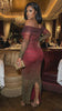This dress is a stunning off-the-shoulder ruched gown that blends deep wine and olive tones for a rich, elegant look. The body-hugging silhouette and sheer mesh overlay create a flattering, sculpted shape that highlights your curves beautifully. Its long sleeves add a touch of sophistication, while the ombre effect gives it a modern, fashion-forward edge. Perfect for evening events, date nights, or formal occasions, this dress effortlessly combines romance and allure.